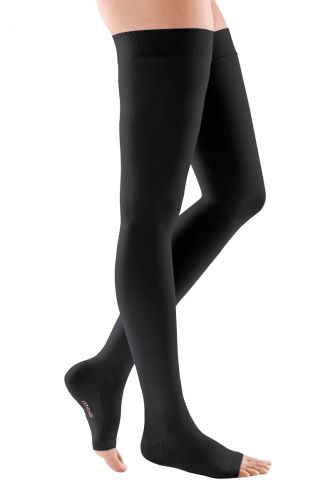 Комфортные компрессионные чулки 1-ого класса компрессии mediven comfort с открытым носком и силиконовой резинкой для лечения заболеваний вен.